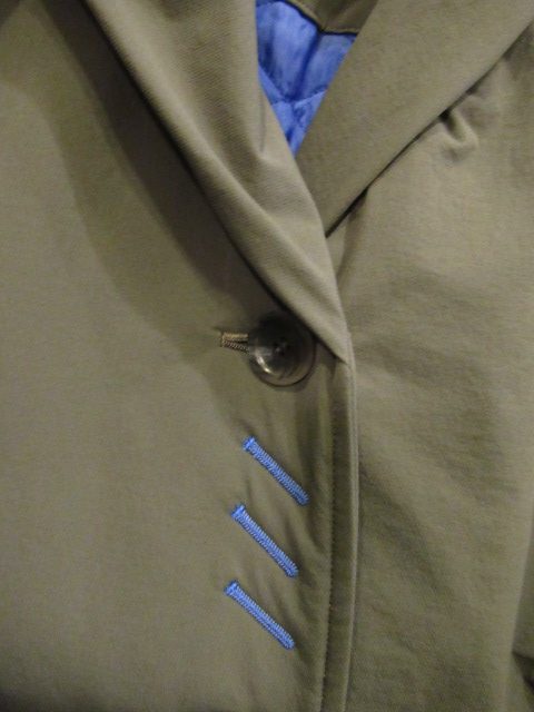 カーキには ブルーのキルティングとボタンホール。