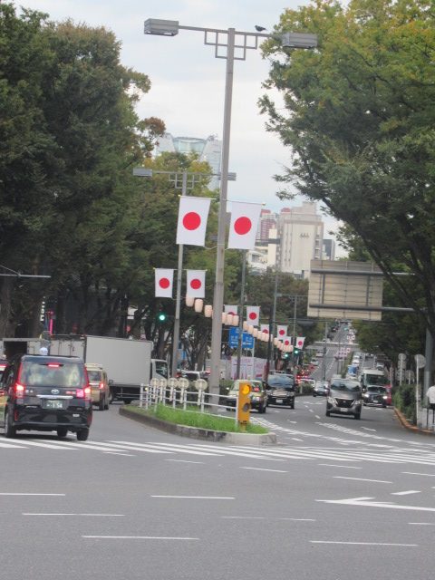 表参道では 日の丸の旗が