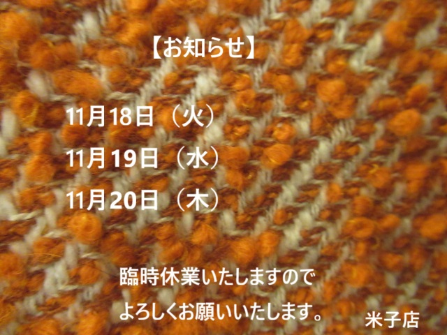 米子店は またまたご不便をおかけいたしますが