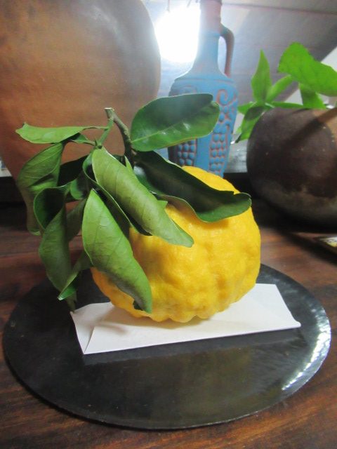 鬼柚子を懐紙の上に。