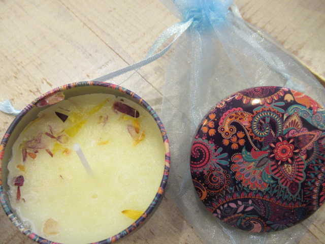 花びらがちりばめられたキャンドル。🙏