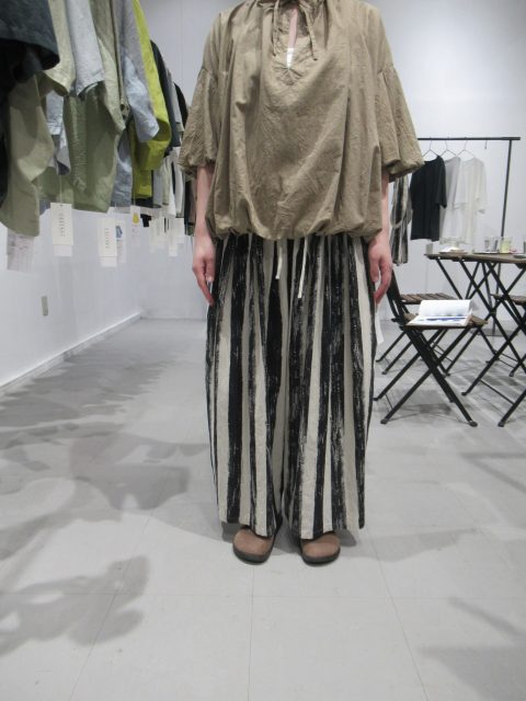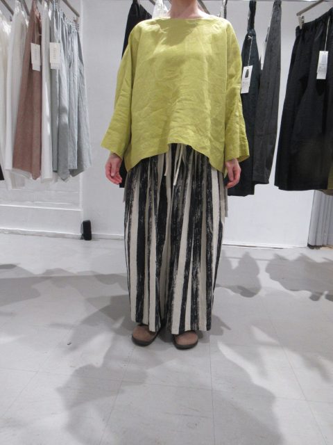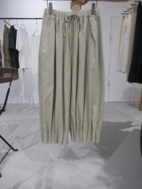 綿麻素材の プリーツパンツ。