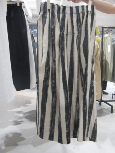 太いストライプのパンツは