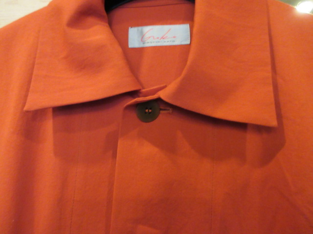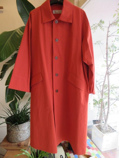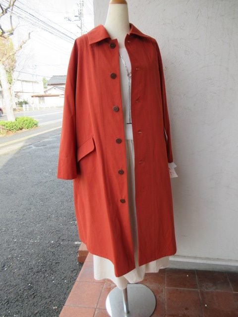 オレンジカラーのスプリングコート。