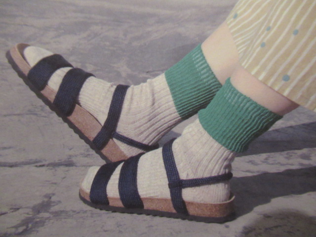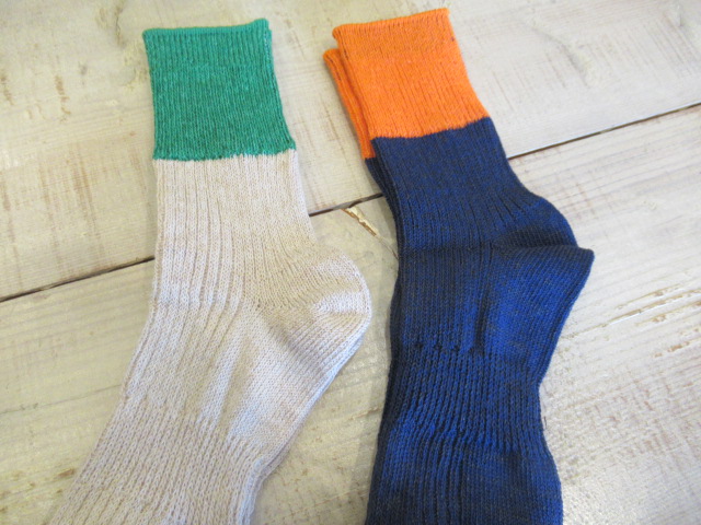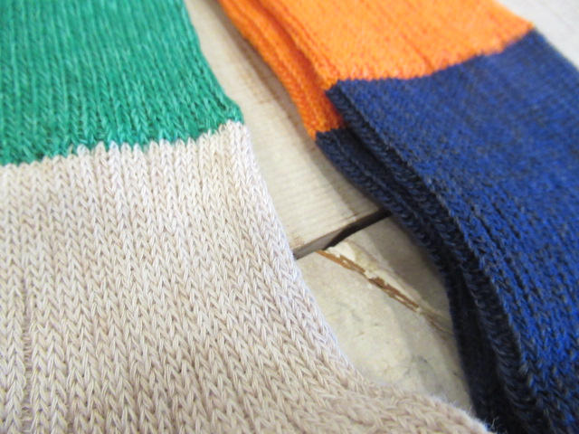 リネン × コットン バイカラーリブショートソックス。
